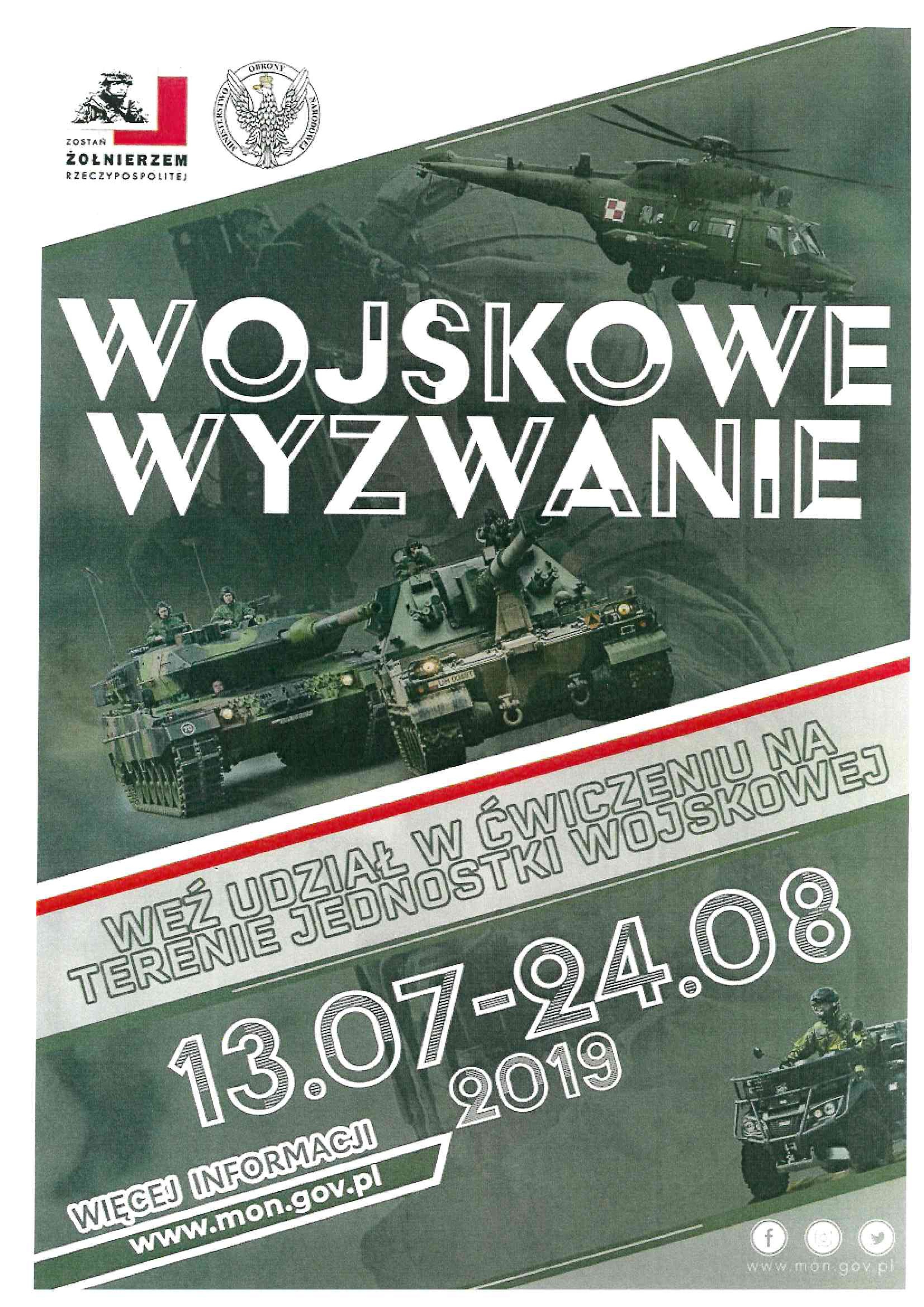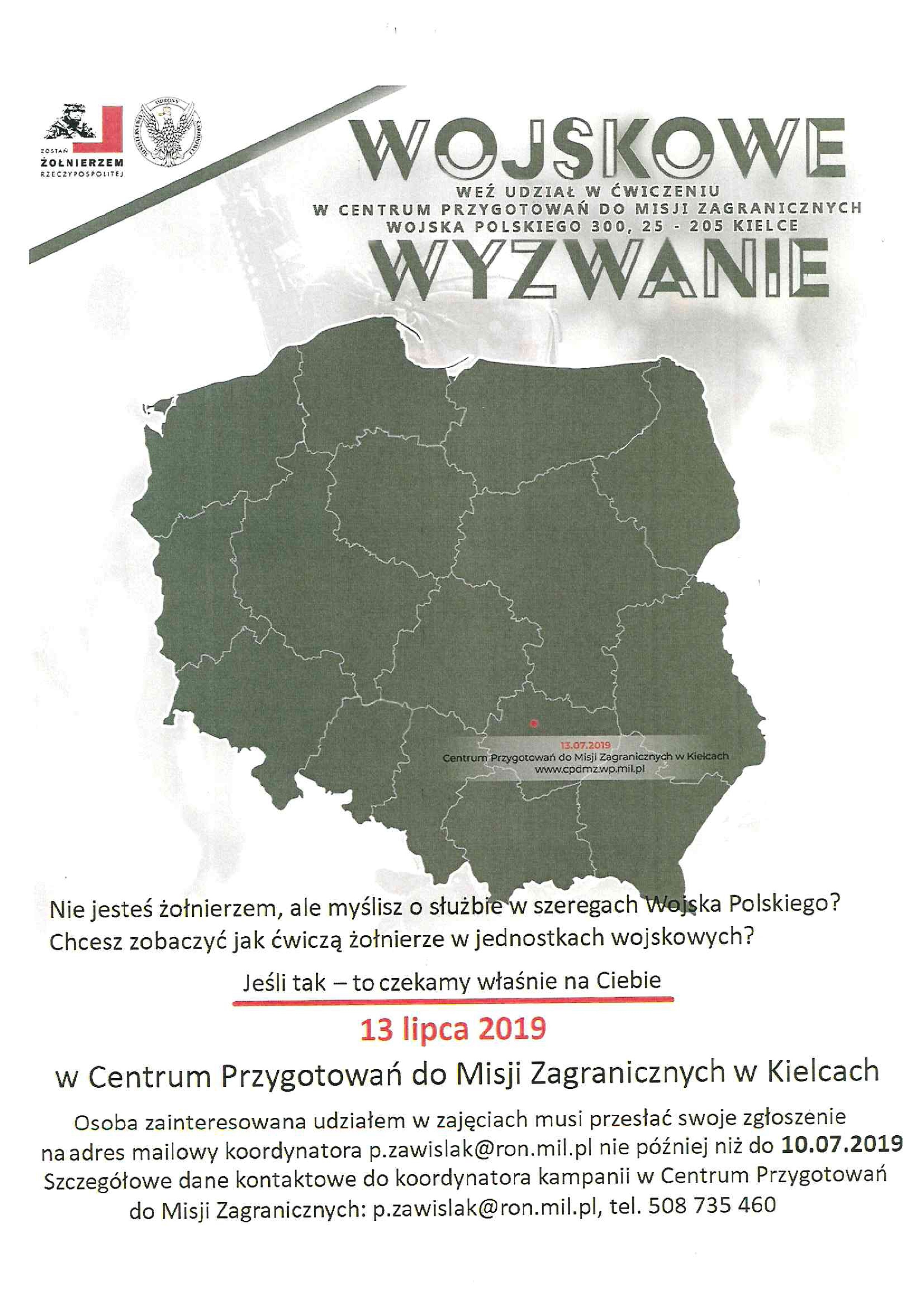 "Wojskowe Wyzwanie" w województwie świętokrzyskim rozpoczyna się już 13 lipca 2019 roku (sobota).