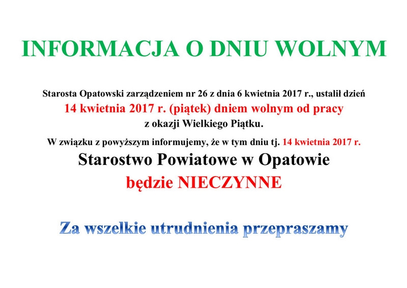 Uwaga!! Starostwo będzie nieczynneArchiwum
