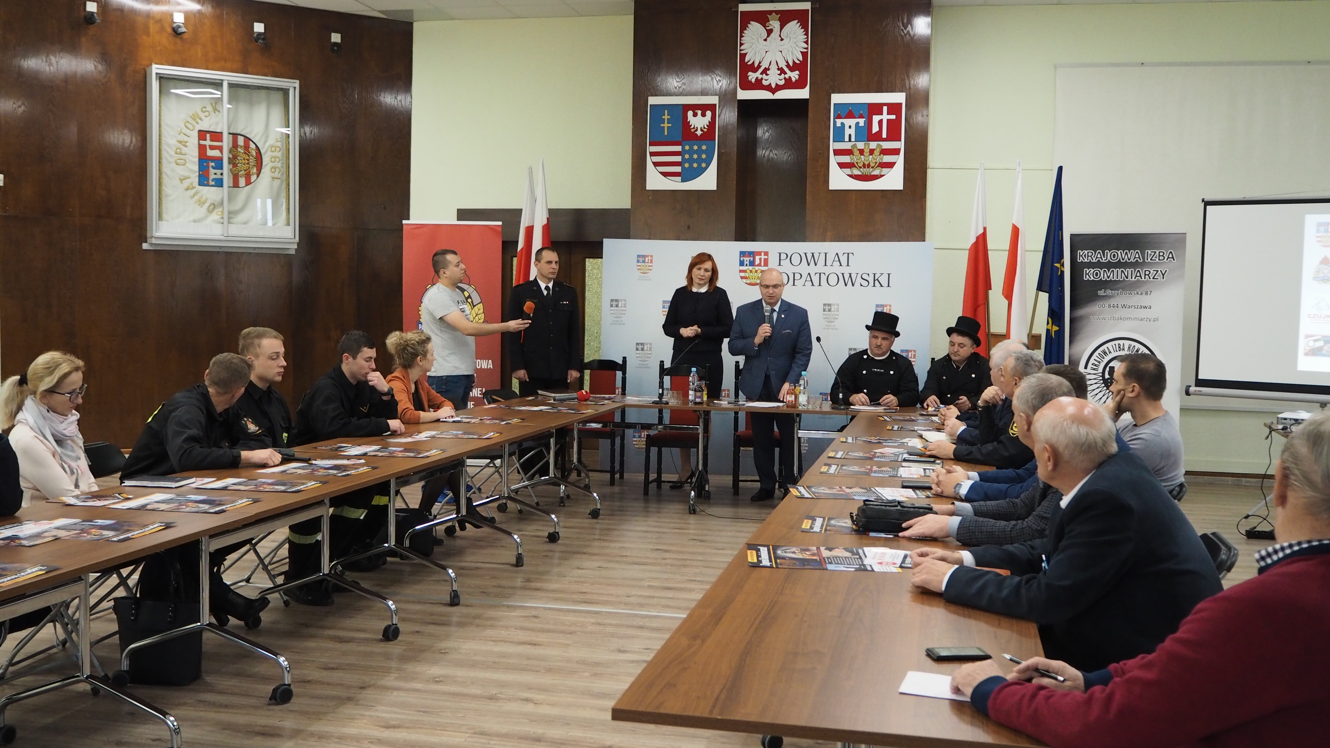 Konferencję poprowadził Starosta Opatowski Tomasz Staniek z udziałem Komendanta Powiatowego Państwowej Straży Pożarnej w Opatowie st. kpt. Sylwestera Kochanowicza, prezesa Krajowej Izby Kominiarzy oddziału w Kielcach Edwarda Kwiatkowskiego oraz wiceprezesa Dariusza Piotrowskiego. Cel tematyczny konferencji dotyczył zagrożeń związanych z możliwością powstania pożarów w mieszkaniach, domach jednorodzinnych oraz zatruciem tlenkiem węgla.