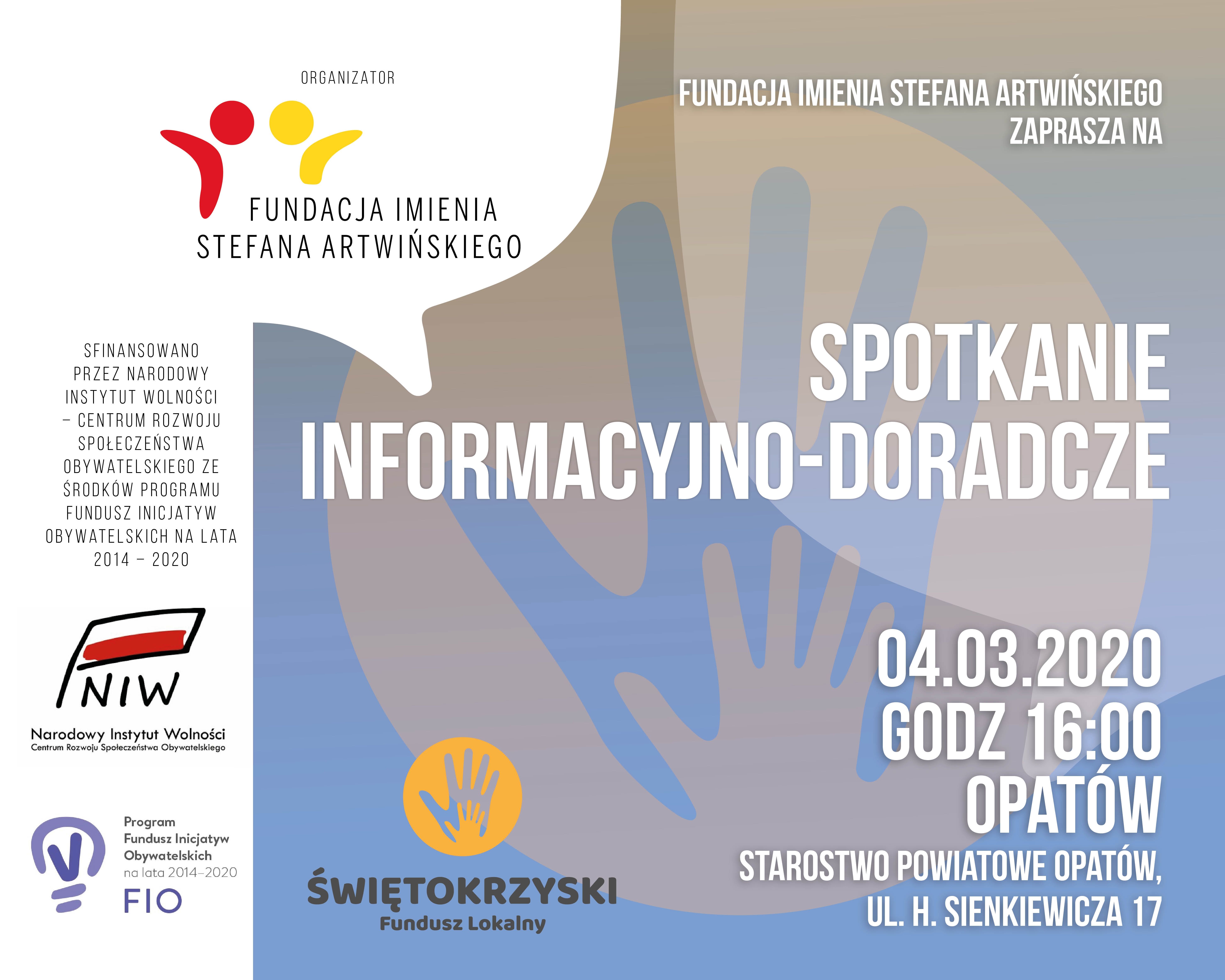 Fundacja Imienia Stefana Artwińskiego oraz Starostwo Powiatowe w Opatowie zapraszają na spotkanie informacyjno-promocyjne dla osób zainteresowanych udziałem w projekcie „Świętokrzyski Fundusz Lokalny”.