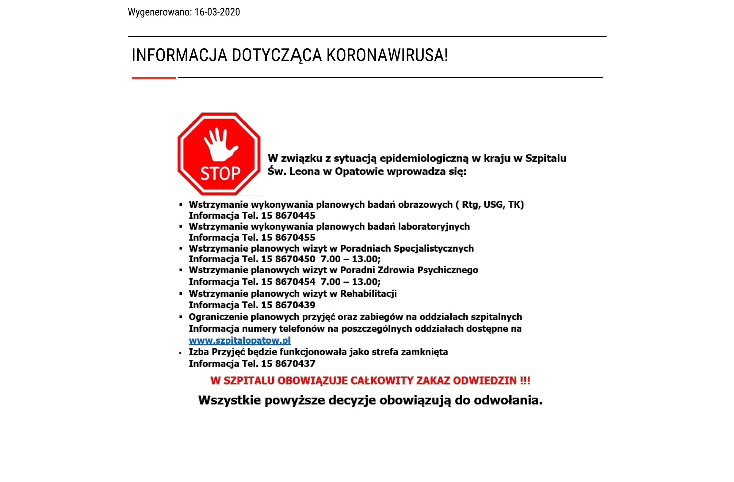 Szpital Św. Leona w Opatowie - informacjaArchiwum