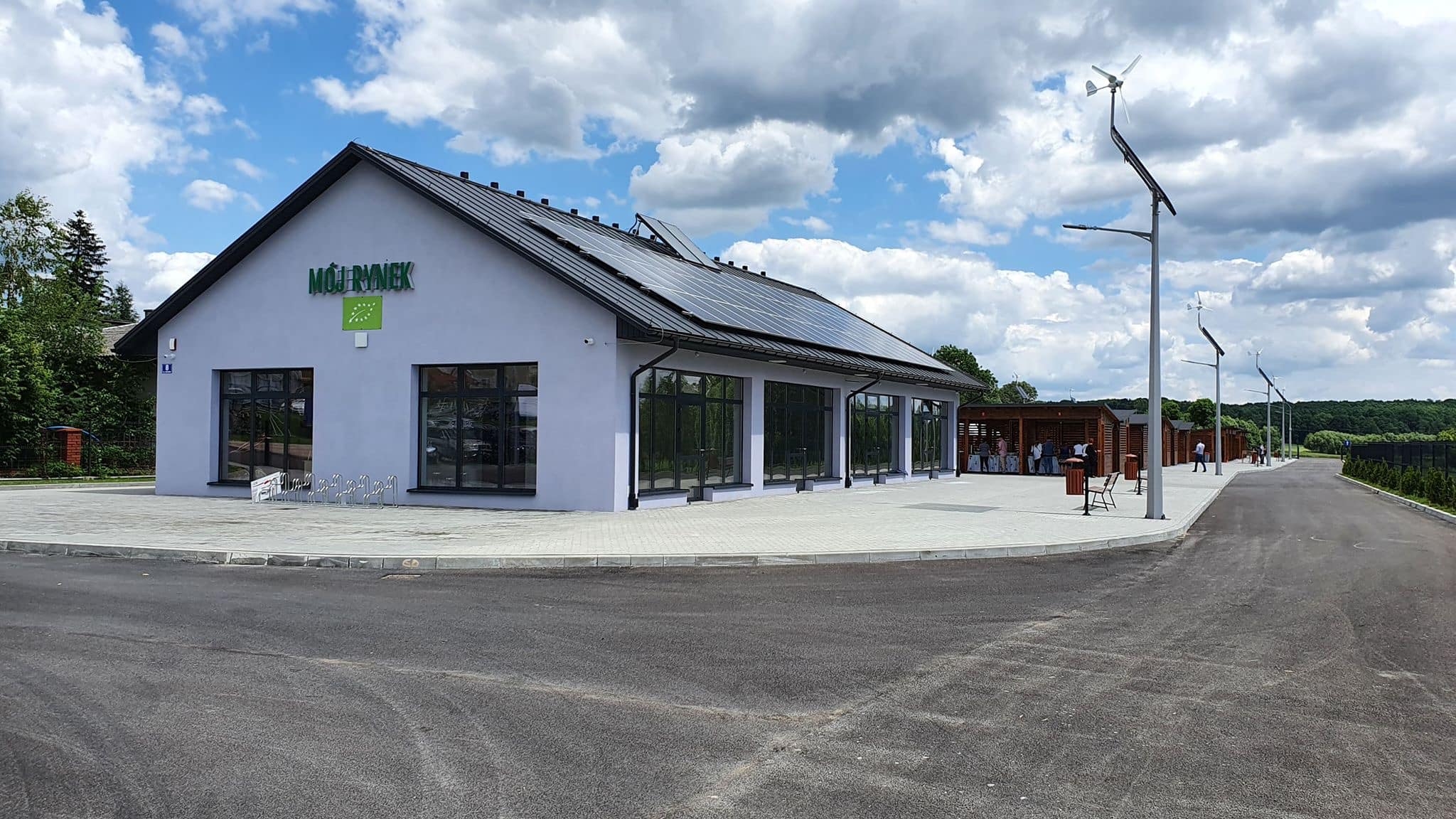 Na terenie targowiska będziemy mogli korzystać z 44 zadaszonych stanowisk handlowych, które posiadają energię elektryczną. Ponad to na placu znajduję się parterowy budynek z przeznaczeniem na sklepy oraz lokal gastronomiczny. Infrastruktura przy placu targowych zawiera między innymi parking na około 60 samochodów.