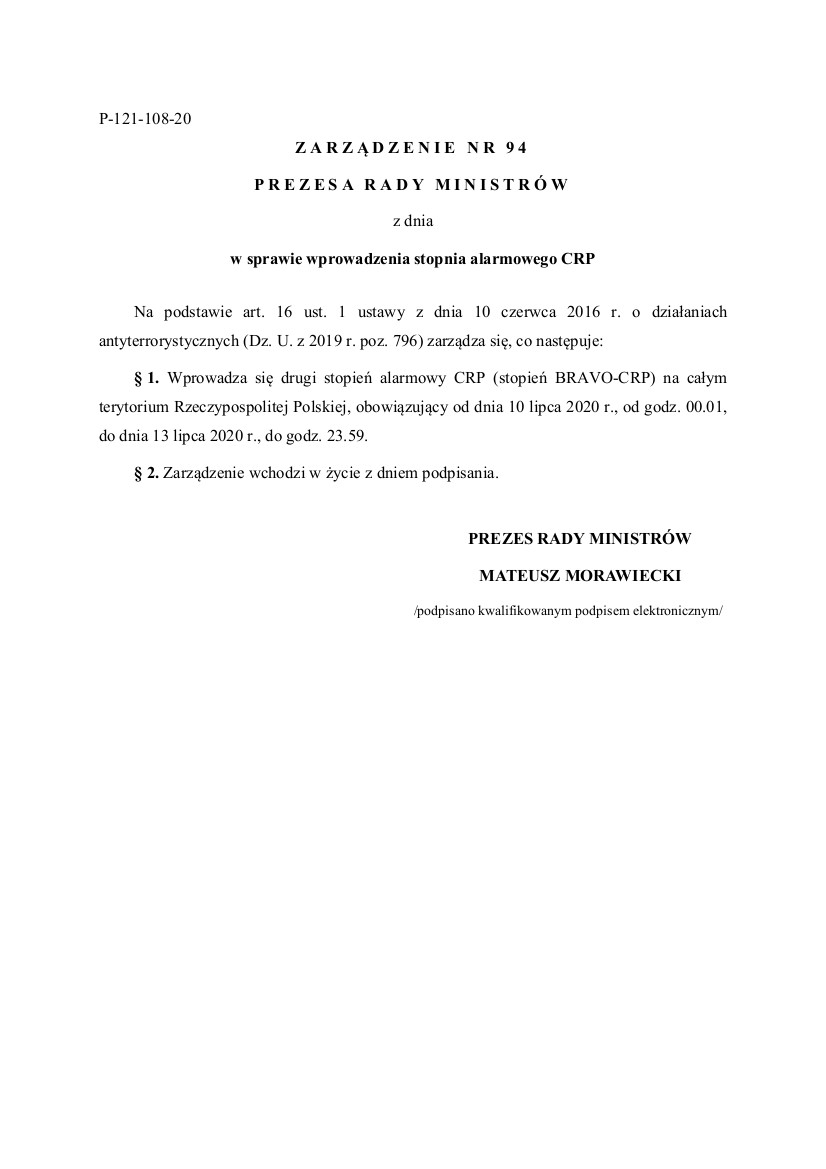 Wprowadzenie stopnia alarmowego związane z organizacją II tury wyborów prezydenckich.