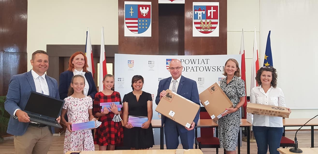 Dziś Starosta Opatowski Tomasz Staniek oraz Wicestarosta Małgorzata Jalowska przekazali sprzęt elektroniczny w postaci tabletów i laptopów na ręce Dyrektora Centrum Placówek Opiekuńczo Wychowawczych Marka Borkowskiego oraz Kierownik Powiatowego Centrum Pomocy Rodzinie w Opatowie Katarzyny Ambryszewskiej.