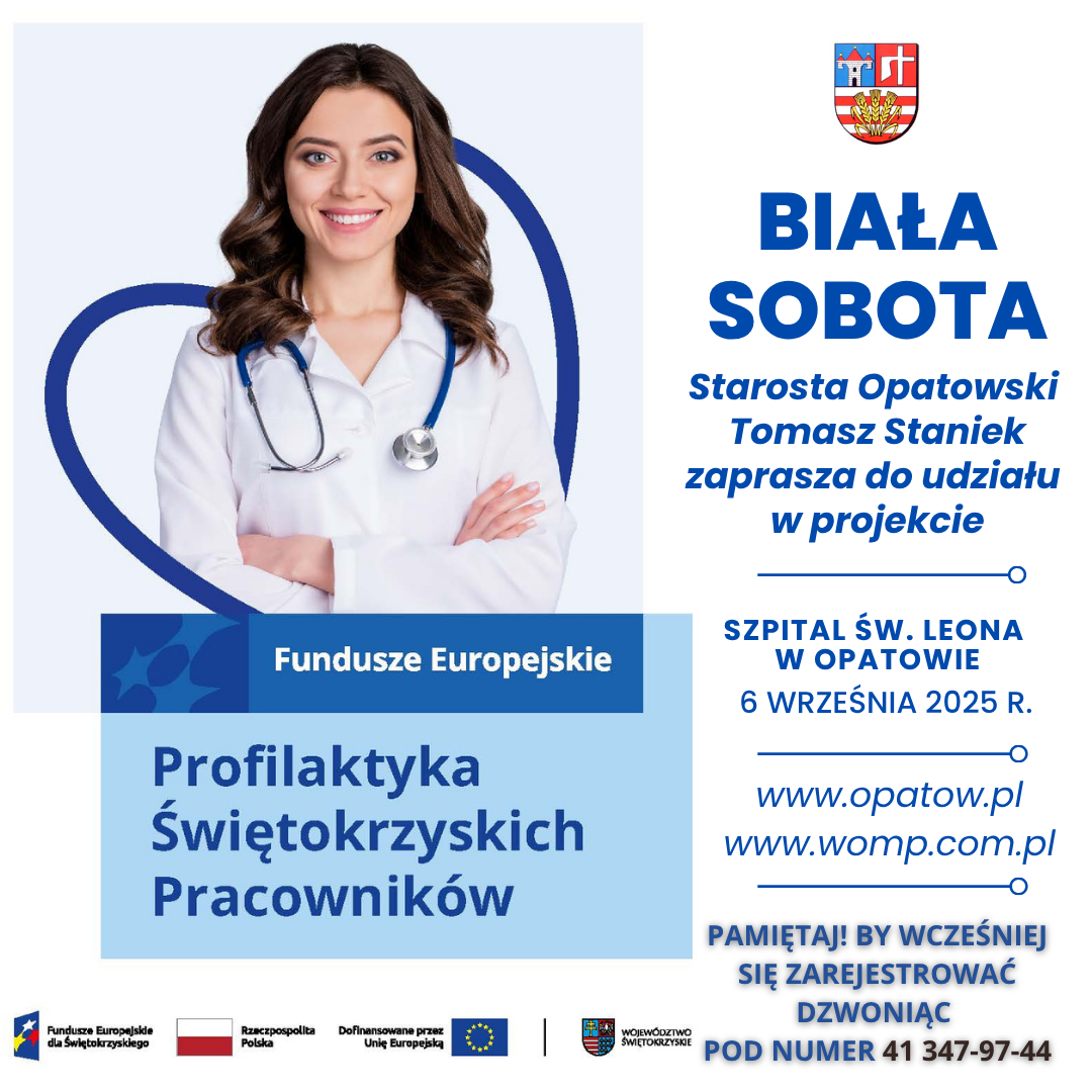 Starosta Opatowski Tomasz Staniek, we współpracy z Wojewódzkim Ośrodkiem Medycyny Pracy w Kielcach oraz Świętokrzyskim Centrum Onkologii, zaprasza mieszkańców powiatu opatowskiego do udziału w projekcie: „Profilaktyka Świętokrzyskich Pracowników”.