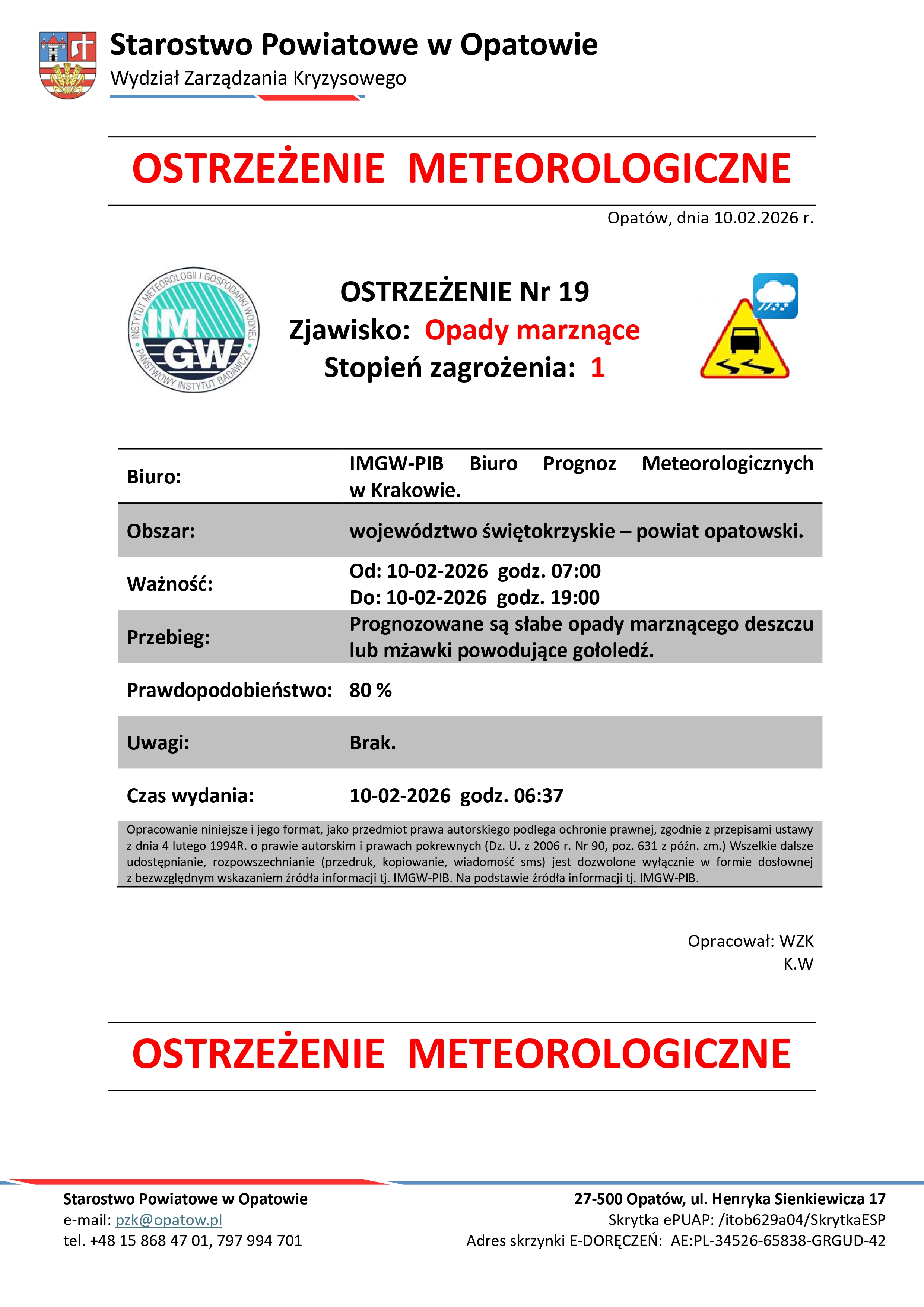Ostrzeżenie meteorologiczne - Opady marznąceArchiwum