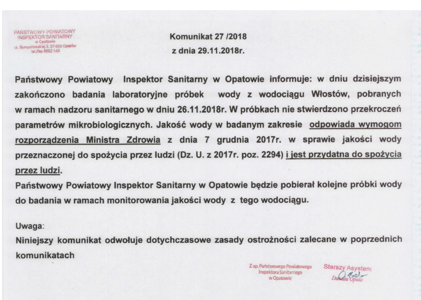 Odwołanie skażenia wody gm.Lipnik