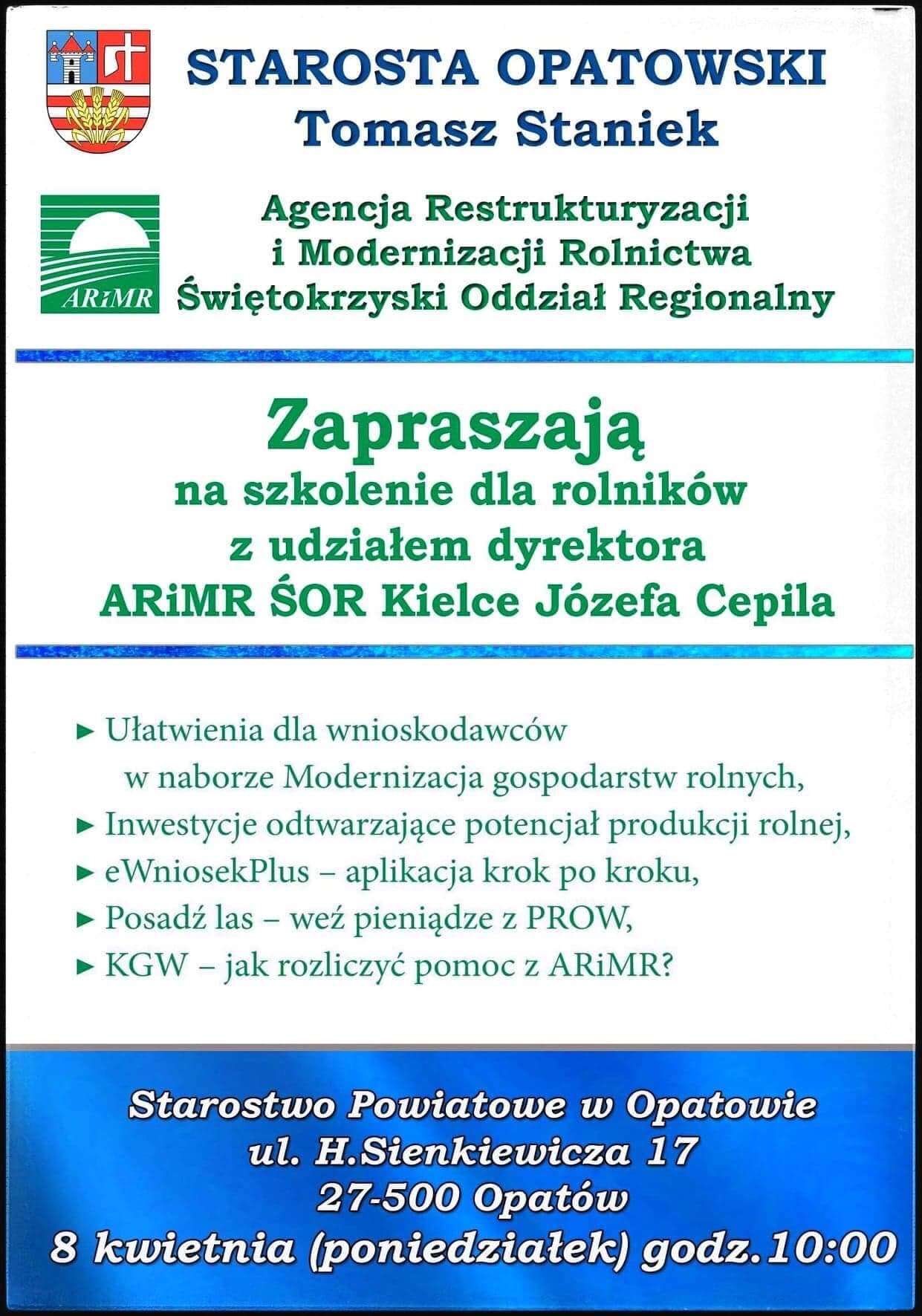 Szkolenie dla rolników w poniedziałek 04-04-2019Data publikacji, 04-04-2019, Michał LeszczyńskiAutor, Michał Leszczyński, 1162Ilość wyświetleń, 1162 Archiwum